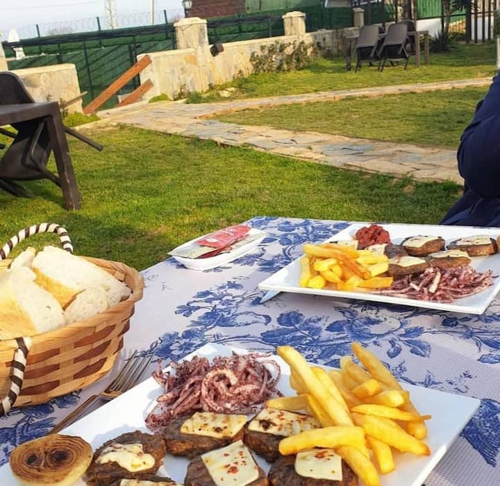 buzë plazhit 3 dhoma me kopsht 1 kuzhinë për çdo dhomë dush tualeti