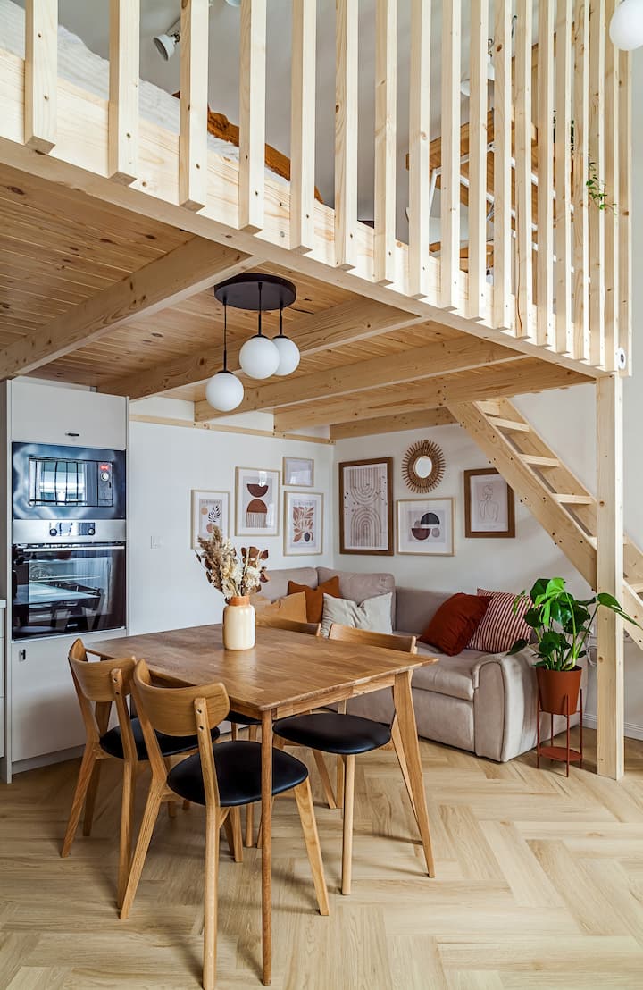 Banesa ka tavane të larta prej 3.7 metrash që mundësuan krijimin e një dhome gjumi të rehatshme me loft. Dhoma e gjumit është afërsisht 10 metra katrorë me një lartësi të brendshme prej 1.7 metrash. Dhoma e gjumit ka gjithashtu një qoshe të vogël të stacionit të punës dhe një televizor inteligjent me qasje falas në Netflix.