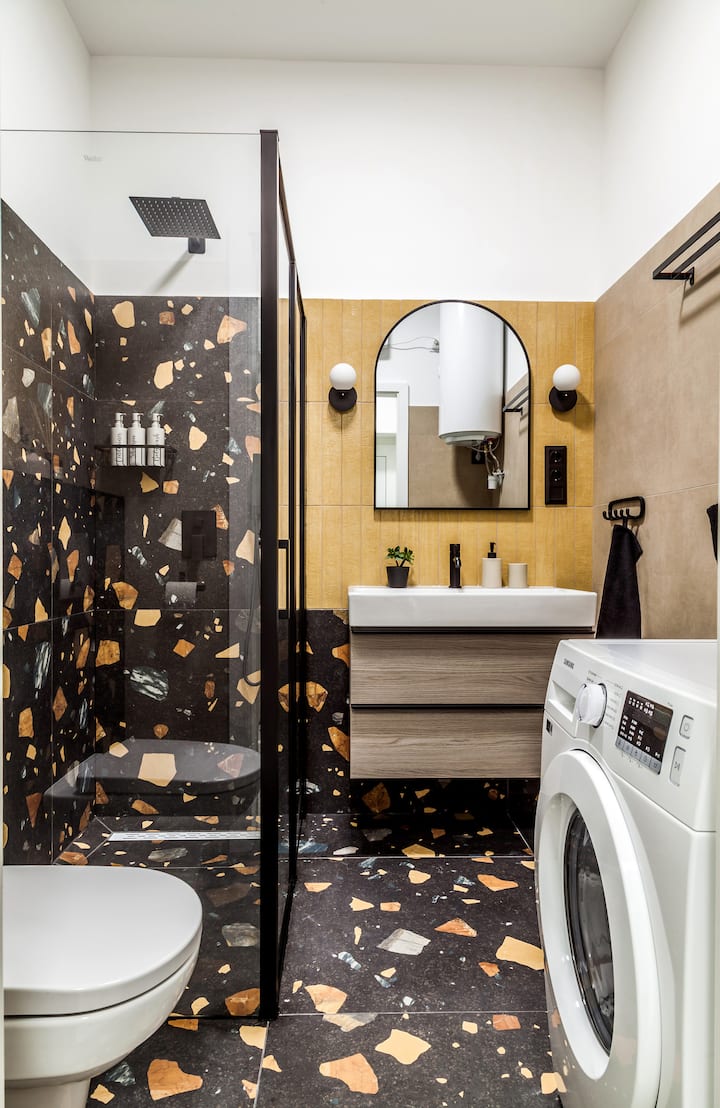 Banja prej 4 metrash katrorë është rinovuar plotësisht dhe është e pajisur me lavatriçe. Do të të ofrojmë gjithashtu larje trupi, shampo, balsam dhe disa artikuj të tjerë kozmetikë.