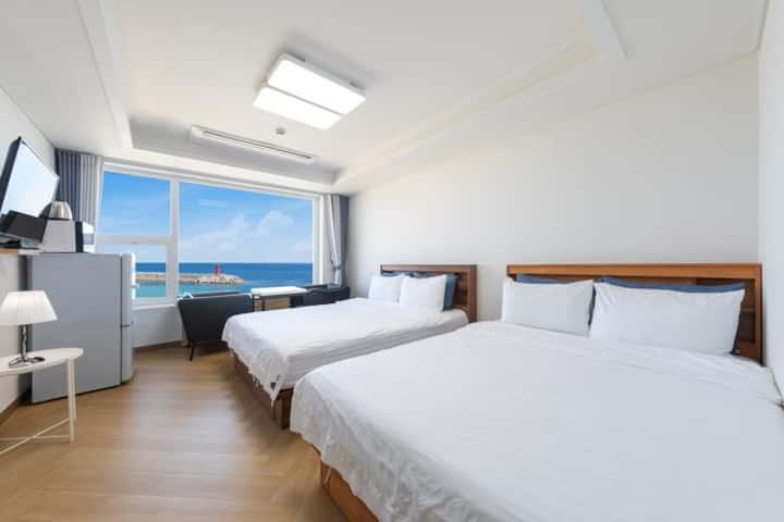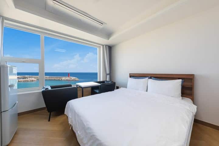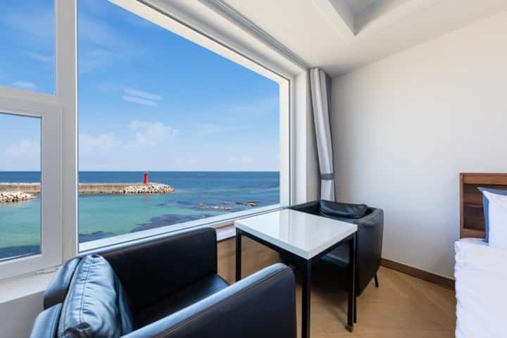 Dhomë blu në det para teje, me pamje nga oqeani