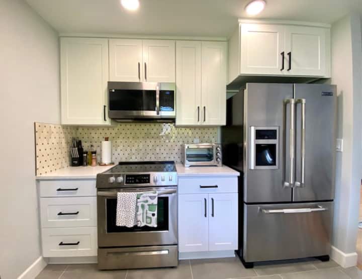 Një kuzhinë e plotë duke përfshirë frigoriferin, mikrovalën, mikrovalën, furrën/sobën, aparatin e kafesë dhe gatimin bazë dhe ngrënien thelbësore i bëjnë gjërat më të lehta kur të duash të gatuash në shtëpi vakt gjatë qëndrimit.