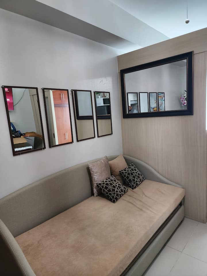 Një njësi moderne dizajni në Sea Residences, kompleks apartamentesh kondominiale pranë MoA. E përkryer për çiftet që duan të shijojnë një pushim të matur dhe privat. Shijo një pushim të mirë natën para se të udhëtosh ose të mbërrish në aeroport.