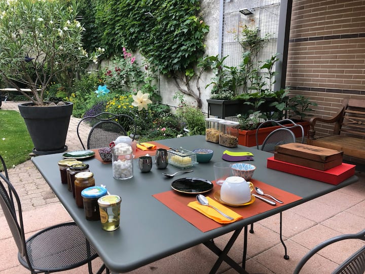 Shtëpia jonë është e madhe dhe e rehatshme. Kam kënaqësinë të vë në dispozicion një kat të plotë për udhëtarët që vizitojnë Reims