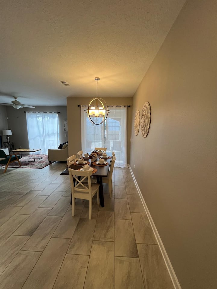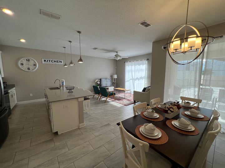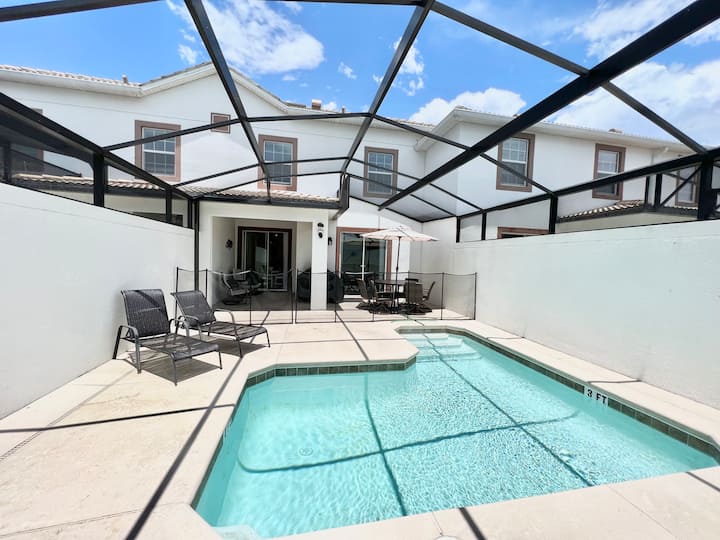 Shtëpi e mahnitshme e qytetit 4 dhoma gjumi 3 banjo me pishinë private të vendosur në Storey Lake Resort, televizorë në të gjitha dhomat, kuzhinë e pajisur plotësisht, klub fantastik, 24 orë siguri, 5 min nga Disney, 7 min nga Premium Outlet. Akomodon deri në 10 vizitorë.