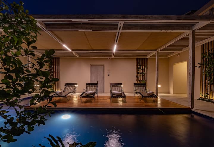 Pasi të hysh brenda, do të kesh qasje të plotë në apartament dhe në të gjitha hapësirat e përbashkëta, duke përfshirë oborrin e brendshëm me një pishinë të rrethuar nga bimë tropikale dhe hamakë, vendi i përkryer për t'u çlodhur dhe për të shijuar flladin e Karaibeve.