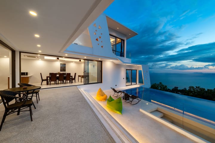 Lër kujtime në këtë shtëpi unike të përshtatshme për familje.Vendndodhja e vilës së dyfishtë: Zona më e mirë e perëndimit të diellit në Koh Samui, Central Point.Unaza e Koh Samui.Platforma e parë e pjerrët përballë hyrjes së Hotel Four Seasons, hoteli më i shtrenjtë në Samui.Është më e lehtë të lëvizësh... Çdo automjet mund të ngjitet lehtësisht, 2 minuta më këmbë.Disa sekonda me makinë, 5 minuta me makinë nga vila deri në plazhin Bangpor dhe plazhin Nathon, 10 minuta deri në terminalin më të madh të qendrës së transportit të Koh Samui, skelë Nathon 10 minuta me makinë deri në 7-11.24 orë supermarket 3 minuta me makinë deri në supermarketin e madh gjithëpërfshirës Lotus 10 minuta me makinë deri në qendrën administrative të rrethit Nathon.Bankë. Barnatore. Tregu i prodhimeve të detit 10 minuta me makinë, ha dhe pi përreth zonës për gjithçka që të duhet për pushimet e tua, 30-40 minuta me makinë për në aeroport dhe 30-40 minuta me makinë për në rrethin Chaweng, zona më e zhurmshme e Koh Samui.