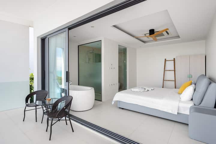 Poshtë kodrave Binjake, kthehu majtas në Naton, plazhi është i përshtatshëm për të parë perëndimin e diellit.Bëj një fotografi, kthehu djathtas në plazhin bangpor për diell.Luaj me ujin, të gjitha janë 5 minuta larg.Shpati i përpjetë të Vilës së Gemini në vilën me pamje nga deti në Samui është një pjerrësi e rrallë dhe rruga kryesore rreth ishullit është drejtpërdrejt në rrugën kryesore dhe nuk është shumë nga vila me pamje nga deti në Samui.
