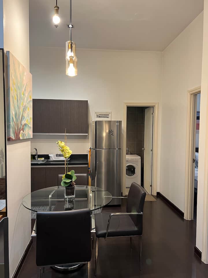 Vendndodhje e përshtatshme dhe qendrore në zemër të Makatit. Distrikti Qendror i Biznesit, Aeroporti Ndërkombëtar dhe Vendor (afërsisht 6 milje ose 10 km) është një udhëtim i shkurtër me kabinë nga njësia. Distanca e ecjes ose taksia e shkurtër larg vendeve të ngrënies dhe jetës së natës përgjatë Makati Avenue, Jupiter Street dhe Greenbelt-Glorietta.