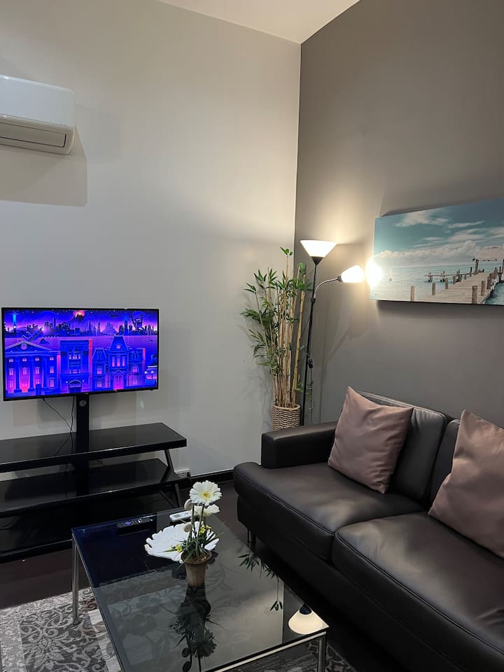 * Dhomë ndenjjeje me një divan lëkure me 2 vende shumë të rehatshme