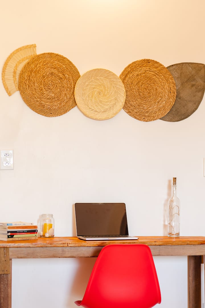 Një dhomë me wifi që është e përshtatur mirë për punë.
