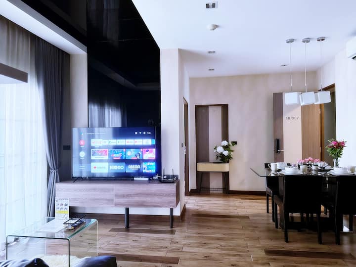 Dhoma e ndenjjes /zona e ngrënies/zona e kuzhinës: >> > SAMSUNG me ajër të kondicionuar, Smart TV 55 inç mund ta përdorësh llogarinë tënde për të hyrë për të parë Netflix~YouTube ~ ose të tjera, Tavolinë ngrënieje Kuzhina Moderne me ujë të nxehtë nga qelia diellore, Qilar kuzhine, Frigorifer SAMSUNG, Mikrovalë, Tost, Kazan, Enë kuzhine.