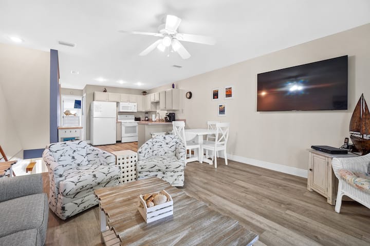 Take a Paws është udhëtimi në Kepin San Blas që e ke shtyrë sepse nuk dije ç'të bëje me qenin. Përgjigjja është këtu: sillini ato. Plazhi i Cape San Blas është një nga zonat më mikpritëse për qentë në bregdetin e Gjirit të Floridës, zorra e ujit në strehën e makinës kujdeset për putrat me rërë pas çdo daljeje dhe vetë Take a Paws është projektuar për atë lloj pushimesh të relaksuara dhe pa nxitim, të cilat janë po aq të përshtatshme për ata me dy këmbë sa edhe për ata me katër. Mëngjeset fillojnë me verandën me rrjetë — ventilatori i tavanit që rrotullohet, uji i filtruar i pastër në aparatin e kafesë, flladi i Gjirit që bën të vetën pa asnjë mushkonjë. Plazhi është një minutë larg, sapo të gjithë të jenë gati. Pasditet kalojnë midis sërfit, pishinave të komunitetit dhe ekranit 65 inç të dhomës së ndenjjes në një pasdite me shi. Mbrëmjet i përkasin verandës së suitës kryesore, duke soditur Gjirin të kthehet në ngjyrë ari dhe rozë në perëndim të diellit, me vaskën e ngrohtë që të pret brenda, pas një dite plotësisht dhe tërësisht të mbyllur. Bëj një pushim. E ke merituar.