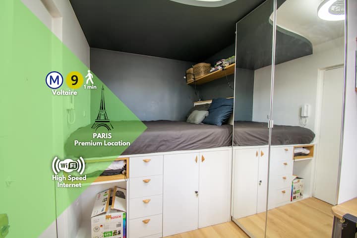 Studio magjepsëse në zemër të datës 11, pranë Marais, République dhe Bataclan — ideale për të zbuluar Parisin në këmbë!