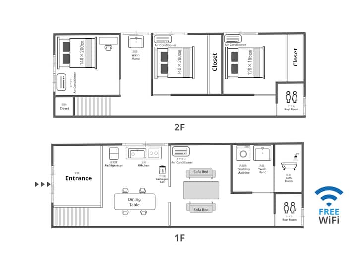 Shtëpi me qira | 2 ndalesa 4 minuta deri në Namba!E përshtatshme për pamjen e Minamit në Osaka | wi-fi | Fjetje 10