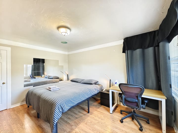 Një dhomë me wifi që është e përshtatur mirë për punë.