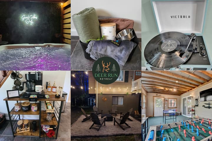 Në Deer Run Retreat, do të gjesh një përzierje të këndshme të natyrës dhe rehatisë moderne. Ngjitu në verandën e përparme, merr frymë në ajrin e pastër të malit dhe pi kafen e mëngjesit ndërsa dreri endet butësisht nëpër oborr. Ndërsa dita zbret, mblidhu rreth zjarrit të ndezur, të larë në dritën e ngrohtë të dritave me tela që lëkunden lart, ose zhytu në vaskën me hidromasazh, të serenuar nga tingujt e qetë të natyrës.