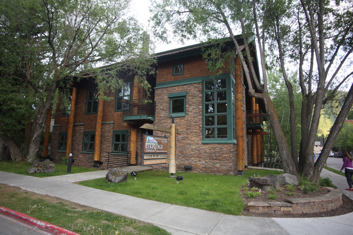 Kjo shtëpi qyteti 2 BR,2 BA është në kufi me Parkun Kombëtar Grand Teton, i cili ofron vendndodhjen e përkryer për pushimet e tua në Jackson Hole. Shtëpia jonë e qytetit ka 2 krevate në katin e sipërm (krevate dopio "queen") me një banjë të përbashkët. Shënim: Banja e dytë është në katin e poshtëm të kuzhinës. Të dy banjat kanë dushe në anën më të vogël, pa vaska. Dhoma e ndenjjes ka një hapësirë për t 'u ulur me televizor dhe oxhak prej druri. Ambienti i ngrënies dhe kuzhina janë ngjitur me dhomën e ndenjjes. Ka një dhomë lavanderie në katin përdhes.