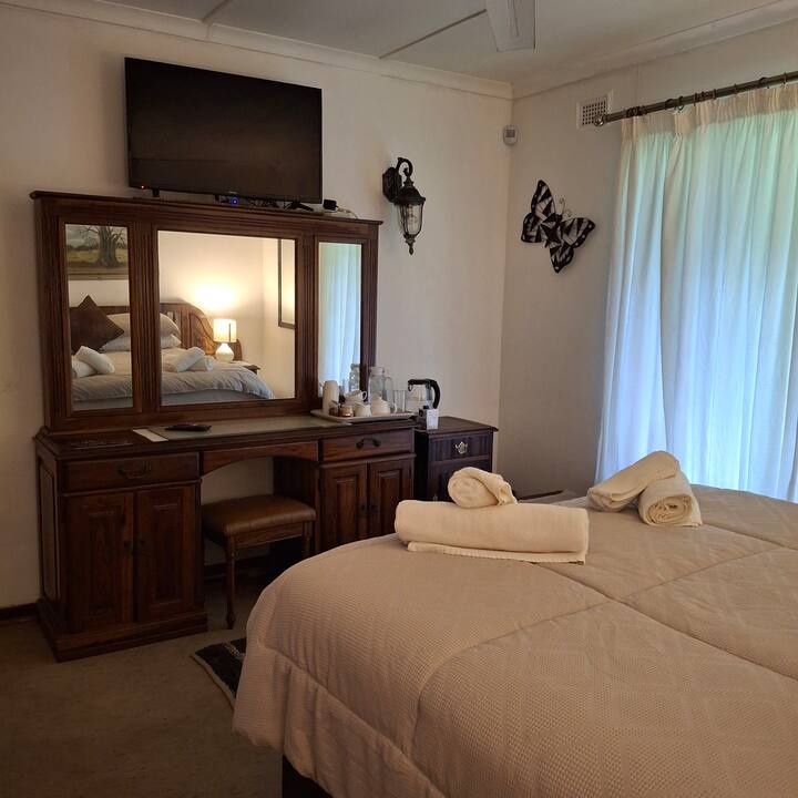 Zelfi afrikan Kingfisher Guesth - Njësia Malachite. Përbëhet nga një shtëpi me 2 dhoma gjumi me kuzhinë të hapur dhe një pamje të bukur në kopsht1 banjë për t 'u ndarë me një familje