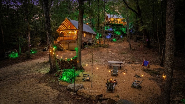 Kabinë në pyll | Vaskë me hidromasazh, gropë zjarri, barbekju
