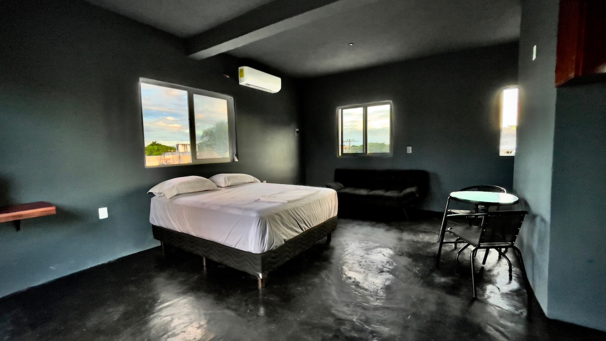 Ndodhet në qendër vetëm 50 metra larg detit. Ju vetëm duhet të dilni për të shijuar pamjen e bukur të detit Cozumeleño. Ndodhet pranë parkut kryesor, restoranteve dhe bareve. Studio është shumë komode dhe e thjeshtë, ka një krevat të rehatshëm "queen size", një banjë të këndshme me ujë të nxehtë, një kuzhinë të pajisur plotësisht, frigorifer, aparat kafeje dhe blender.