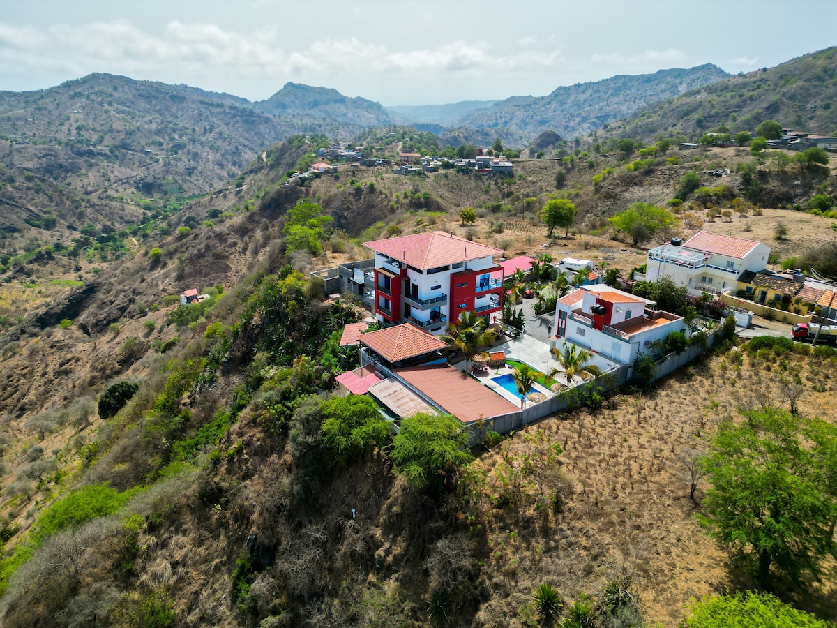 A ndiheni sikur po zbuloni natyrën e mrekullueshme të Cape Verde në zemër të ishullit Santiago? Pastaj shtëpia jonë e pushimeve në Picos është hapësira e përkryer për familjen ose grupin e miqve tuaj! Harroji shqetësimet e tua në tarracën tonë me pamje nga lugina dhe malet përreth. Kuzhina jonë e ndritshme dhe e gjerë ka gjithçka që ju nevojitet për të përgatitur darka në shtëpi. Vendosur në mënyrë të përshtatshme (10 minuta udhëtim nga rruga kryesore Praia-Assomada-Tarrafal), kështu që ju mund të planifikoni udhëtimet tuaja në të gjithë ishullin Santiago.