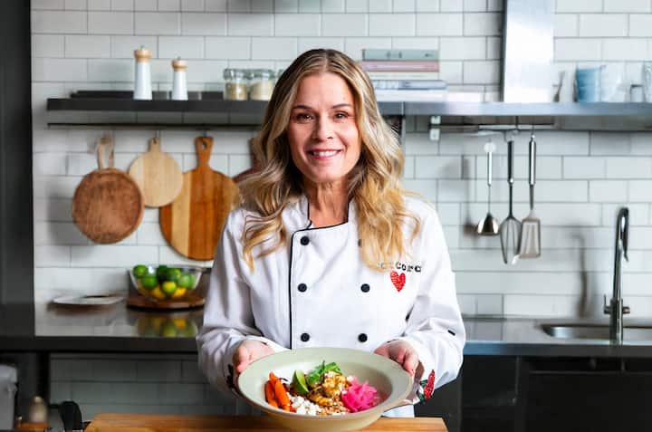 Kuzhinierja Cat Cora shërben ushqime të pasura dhe ushqyese të rrënjosura në trashëgiminë e saj greke dhe filozofinë e mirëqenies.