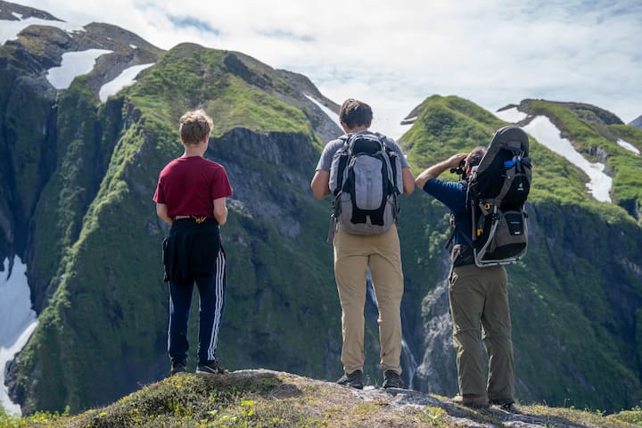 Një sesion fotografik me udhëzues në një vend piktoresk pranë Anchorage me imazhe dixhitale të redaktuara.