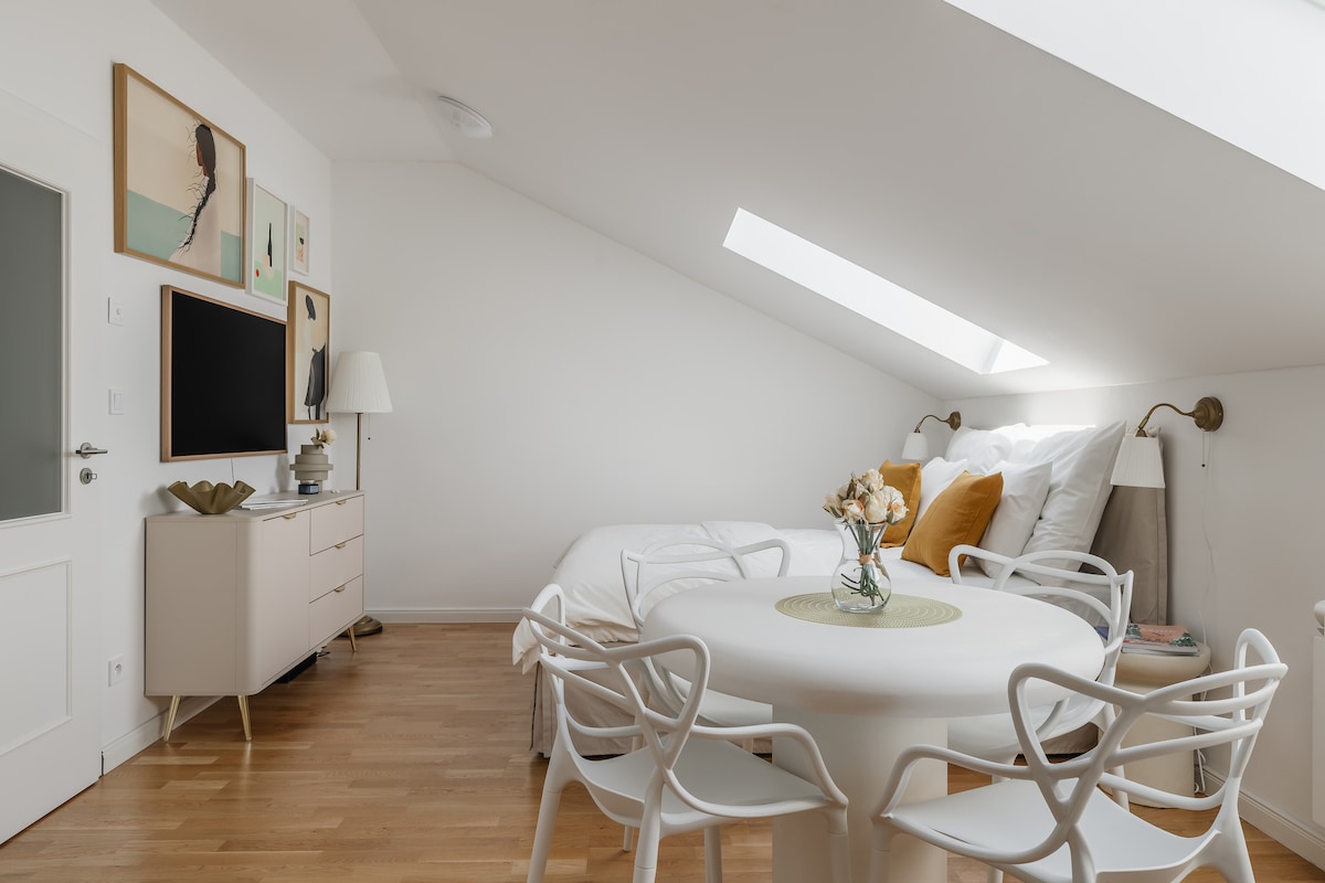 Perlë e rrallë në Pragë, e preferuara e vizitorëve në Airbnb. Disponueshmëri e kufizuar; zakonisht e prenotuar plotësisht. * Hideaway magjepsëse në Pragë * Loft i rinovuar me vendndodhje qendrore në këmbë * Ideale për çifte, udhëtarë të vetëm ose punë * WiFi me shpejtësi të lartë dhe televizor inteligjent me Netflix * Kuzhinë e pajisur plotësisht * Liri, peshqirë dhe artikuj tualeti të ofruar * Shkallët spirale të çojnë në një dhomë gjumi të ëndërruar me krevat dopio "king-size" * Banjë me dush walk-in * Ajër i kondicionuar dhe ventilatorë * Linja e metrosë A (Linja e gjelbër) Namesti Miru - 2 minuta më këmbë