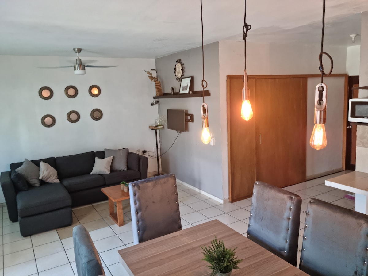 Vend i shkëlqyer për të pushuar, i thjeshtë dhe ekonomik, brenda mundësive të xhepit, me tre dhoma gjumi, dy krevate dopio dhe dy një, linjë telefonike në dispozicionin tënd, 300 MBPS Wifi, 40"Smart TV,Paramount+,MAX dhe Netflix, ajër të kondicionuar mini të ndarë në tre dhomat e gjumit,një ventilator muri në çdo dhomë, dy ventilatorë muri dhe një kat në dhomën e ndenjjes, TV Megacable, mikrovalë, frigorifer, garazh për një automjet dhe një tjetër të parkuar përpara shtëpisë.