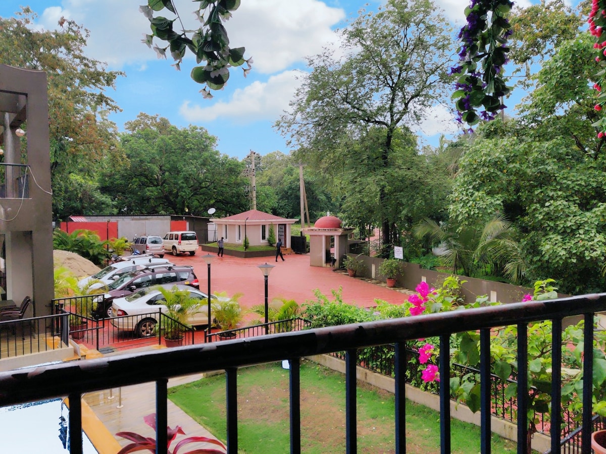 ★★★ Apartament me ★★★★ pishinë dhe pamje nga kopshti me lëkundje në ballkon Pishinë e★ madhe me madhësi së bashku me pishinën për fëmijë Parkim ★ i sigurt★ AC WiFi ★ me shpejtësi të lartë ★ pastrues★ uji rezervë (RO) ★ Ashensor ★ 32 inç televizor LED i instaluar në dhomën e ndenjjes Kanale ★ satelitore me QIELL TATA ★ Kuzhinë★ frigoriferike me enë ★ Banjë personale e bashkangjitur me një gejzer në të gjitha dhomat. Krevate të rehatshëm me madhësi të★ dyfishtë me krevate profesionale. ★ Tavolinë ngrënieje dhe tavolinë kafeje në korridor ★ Një set divan