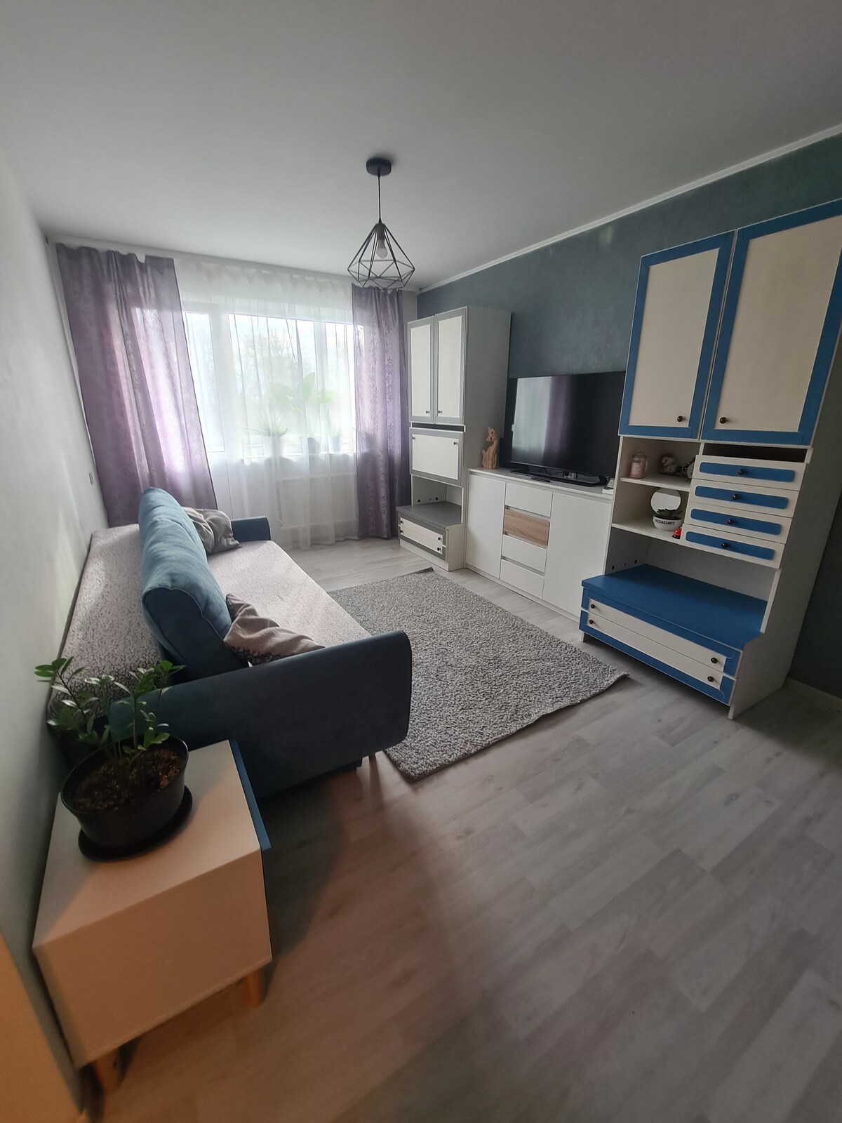 Apartament i rehatshëm në Šiauliai – qetësi, komoditet dhe parkim falas. Të ftojmë të qëndrosh në një apartament të rehatshëm të rrethuar me gjelbërim në Šiauliai! Është një vend i shkëlqyer për t 'u çlodhur ose për të punuar – lagje e qetë, ambient i brendshëm elegant dhe gjithçka që të duhet është vetëm disa minuta larg. Dritaret kanë pamje nga majat e pemëve, mund të shijosh kafenë në ballkon në mëngjes dhe në pak minuta mund të arrish në një dyqan, furrë buke ose park.