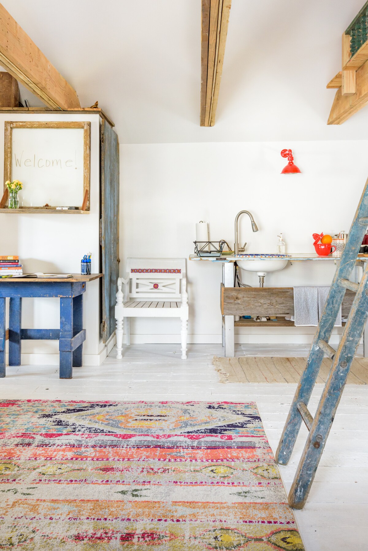 Papafingo e bukur e bollshme dhe e ndritshme e artistëve në katin e dytë të një hangari të sapo rinovuar Warwick pas shtëpisë sonë të fshatit Warwick të vitit 1893. Më shumë informacion Hapësira Ne ofrojmë loftin tonë të mobiluar të artistëve të gjallë dhe të punës në baza ditore ose javore. Lofti : -is 400 sqf -sodhet në katin e dytë -banjë e arreduar bukur Ka një krevat dopio "queen size" shumë të rehatshëm Akses në internet me shpejtësi të lartë -është shumë e rregullt dhe e pastër Lagjja: -një blloqe nga autobusi NJ Transit për në Manhatan. - Restorante dhe kafene të mrekullueshme në afërsi Ky loft është i mrekullueshëm është i përkryer për 2-4 vizitorë. Je në mes të lagjes së bukur të fshatit, por merr rehatinë e një pushimi të rehatshëm. Vizitorët do të kenë qasje në të gjithë hapësirën E KATIT TË DYTË. Ndodhur në luginën e poshtme Hudson, qyteti i Warwick është pak më shumë se një orë me autobus për në qytetin e Nju Jorkut. Eksploro kopshtet dhe kantinat e verës të shumta, shko në teatrin e filmave me makinë ose provo diçka nga një prej restoranteve të fshatit. Lofti është vetëm një bllok nga autobusi NJ Transit që niset nga Autoriteti Portual.